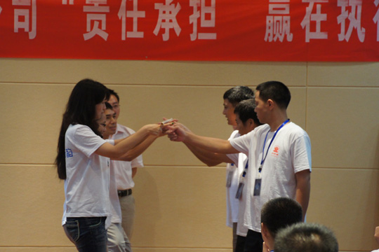 在主題為“合作、共贏,打造核心團隊”的體驗式拓展訓練過程中,四特團隊體驗了一次不同尋常的拓展培訓。四特團隊按指導老師要求分為8個小隊,各小隊擁有自己的隊名、隊長、口號和隊歌。各小隊成員在拓展訓練中為各自團隊榮譽而奮力拼搏。在“看圖片對1-30進行數字解碼”游戲過程中,各隊成員群策群力,用科學邏輯解碼思維。在總共三次解碼中,5個小隊成員勝利完成了解碼訓練。參加拓展訓練的四特團隊在游戲中對團隊形成了新認識,獲得了新知識。“不要拘泥于傳統思維模式、工作方式!”“要實現工作結果最優化就要跳出傳統思維框架,尋求新方式、新思路。”大家紛紛分享各自的培訓感受。
