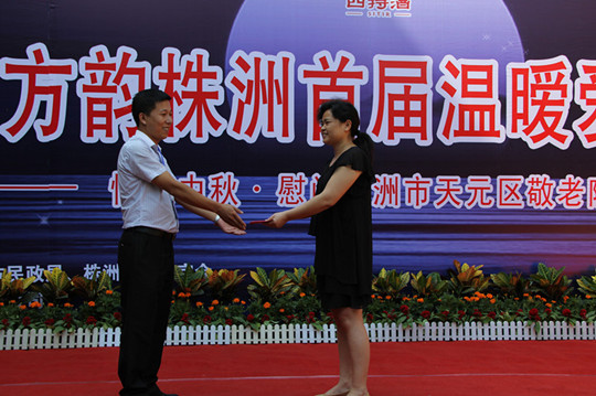 株洲辦經(jīng)理林劍代表四特酒公司為敬老院的爺爺/奶奶們送上中秋月餅及慰問金