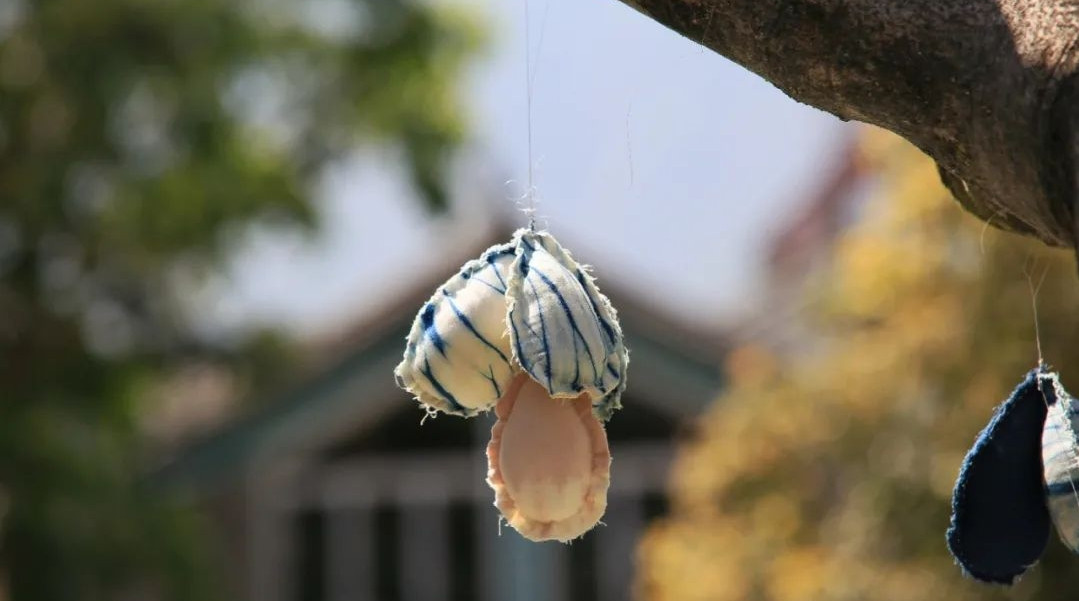 在藍續,扎染布匹隨風而舞,陽光透過枝杈灑下斑斕光影,提供古法扎染的制作與體驗。 白族扎染技藝,經國務院批準列入第一批國家級非物質文化遺產名錄。