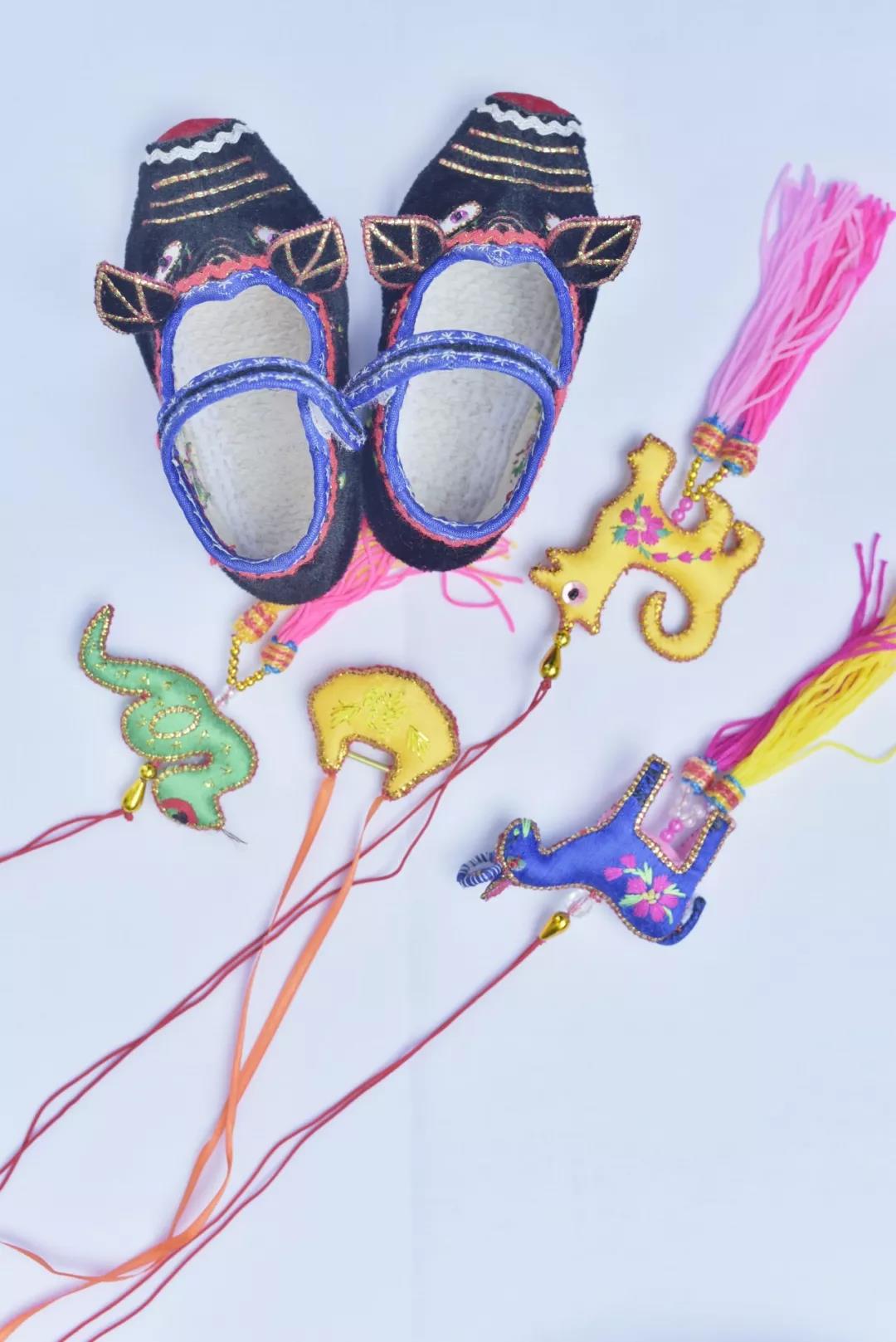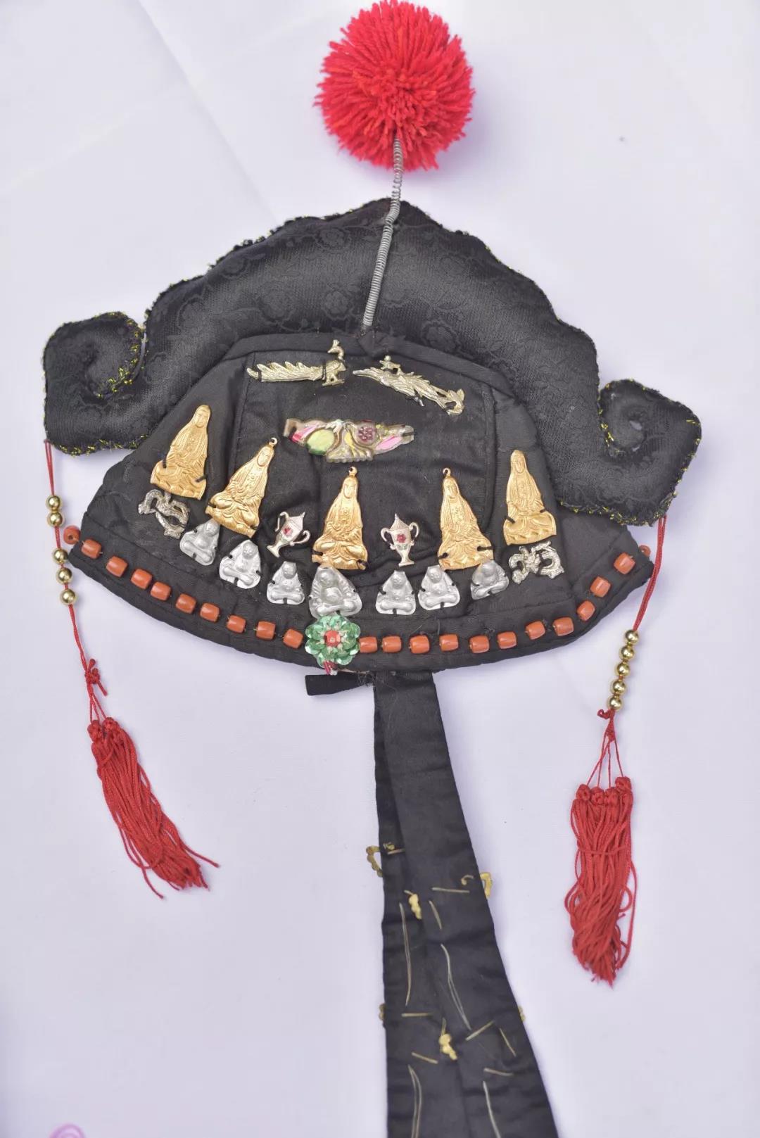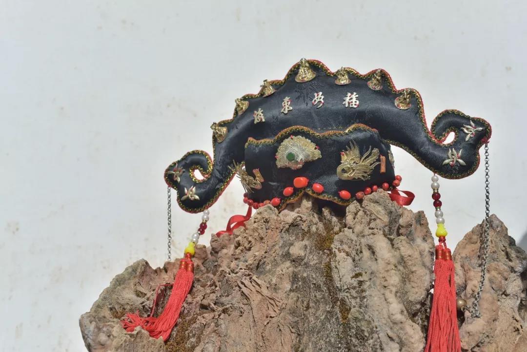 小有小的精妙,大有大的學問。除了小掛件精細別致,趙新妹做的大件帽子、嬰兒鞋也十分精美。純手工的布扎嬰兒帽將布扎與刺繡工藝結合,變換出蓮花、虎頭、狗頭等不同的形狀,再在帽子上裝飾諸如古玉、珠寶等配件,做工十分講究。趙新妹說,一頂帽子要用四五十天才能縫制好,用心程度可想而知。
