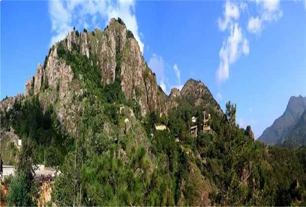 位于縣城西北十里的九鼎山,因九峰突兀,山形獨特,望之簇如一朵青蓮,高崖雄奇,常有白云縈繞而得名。山上的九座山峰名字也很好聽,如“鳳鳴”“攬霞”“招鶴”等,充滿了色彩繽紛的迷幻和神奇的傳說。