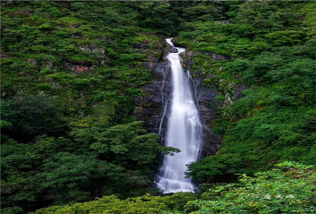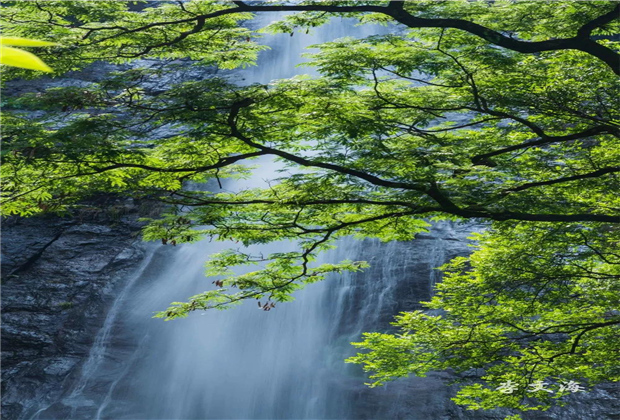 緩步而行,忽然,“嘩嘩嘩”的流水聲在耳畔響起,目之所及,瀑布爭流,泉水清澈,急如飛珠碎玉,甚是壯觀。