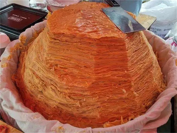 做生皮的,一定得是當天現(xiàn)宰的豬,火燒去掉皮上的毛后,選取最嫩的部分,切成小塊,配上楊梅醬和梅子醋調(diào)制出的蘸水,生蘸而食,口感滑爽而有嚼勁,味道酸辣可口。