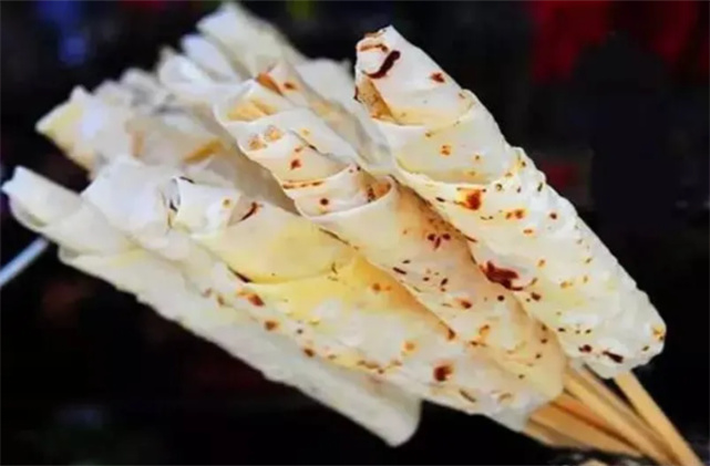 烤的過程中將乳扇平鋪成塊狀,用木棍掛住被烤軟的部分,依口味涂上煉乳或者玫瑰醬,邊卷邊烤,最后卷成筒狀。烤好的乳扇趁熱咬上一口,口感像軟軟的芝士,稍冷卻后的烤乳扇嚼起來多了幾分韌勁,奶的清香與玫瑰醬的清甜在舌尖上碰撞,耐人尋味。