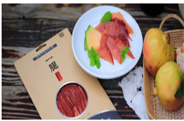 云龍縣諾鄧馬金橋商貿有限責任公司創始人徐琨斌介紹:“火腿采用的原材料是村里村民用玉米、大豆及野生綠葉植物飼養的諾鄧烏金山豬,產出的豬膘肉肉質細膩、瘦肉多,口感十足?!?/span>