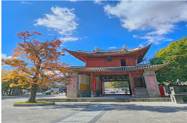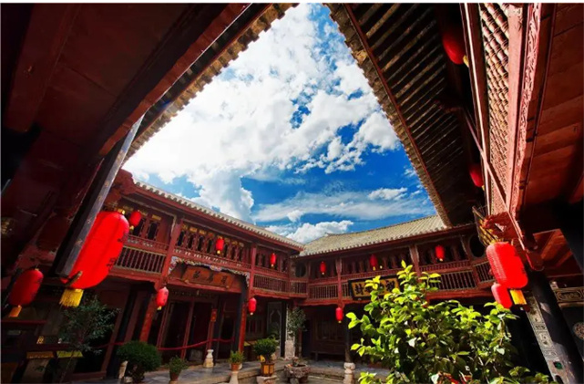 庭院中搖曳的花木為大院平添一分幽雅別致,雖經歲月的洗滌,紅色的朱漆門窗、大理石雕刻的白色圍欄仍不失其當年的風華。在這里,你仿佛可與歷史對望,感受著喜洲靜謐而濃厚的民族風情。