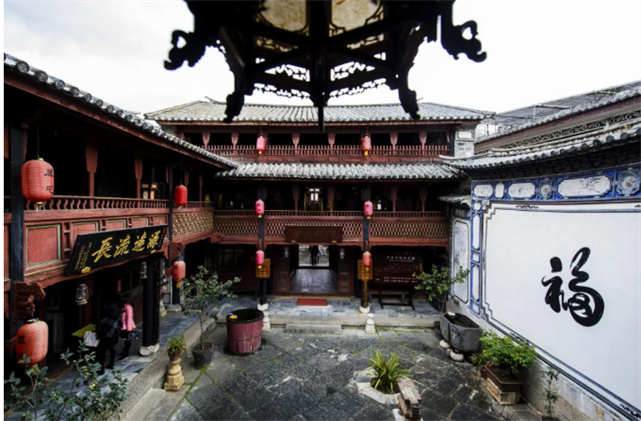 在喜洲古鎮,隨處可見的老宅極具白族特色,“三坊一照壁”“四合五天井”“一進兩院(六合同春)”“走馬串角樓”的白族庭院格局,坐西向東的白族民居古色古香,古建筑煥發著新的活力。