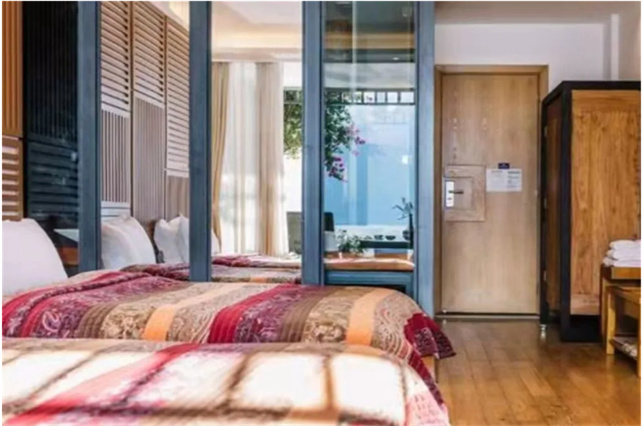民宿臥室有超大飄窗、衣帽間、高端定制的洗漱用品等設(shè)施設(shè)備,滿足客人需求。以木制結(jié)構(gòu)打造,布局精巧,自然溫暖。