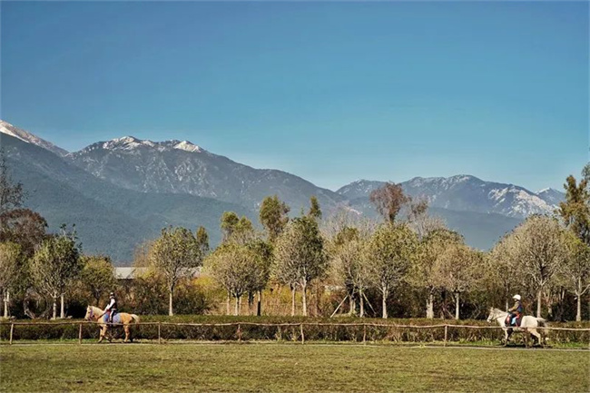 陽光下,藍天映襯著仍有白雪覆蓋的蒼山,位于山腳的馬場青草悠悠,而陽光也為馬兒們勾勒出了一個個優雅的輪廓,在馬場邊的露天椅子上坐下,眼前的這一切美得不真實,仿佛一不小心就會陷落到了一個油畫般的世界中。“駕!駕!駕!”一位位馬術愛好者越來越熟練,他們騎著馬兒自信地跑過馬場,成為“畫作”中最生動的風景。