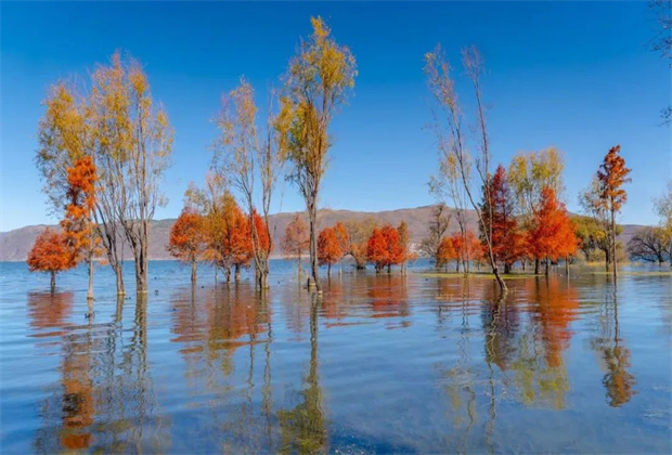 搭配上逐漸變紅的樹(shù)木