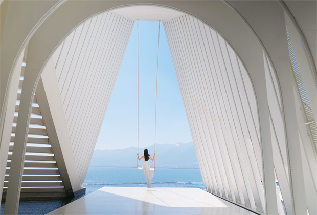 歐式風(fēng)格的建筑,盤旋的海鷗