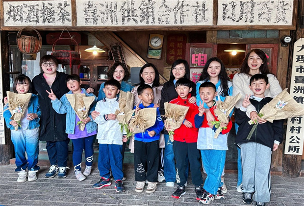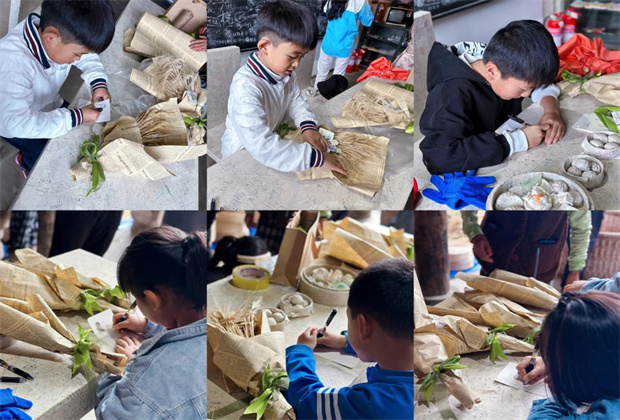 大家把收集好的麥穗整理包扎成花束,并用心寫下專屬于媽媽的節日祝福。