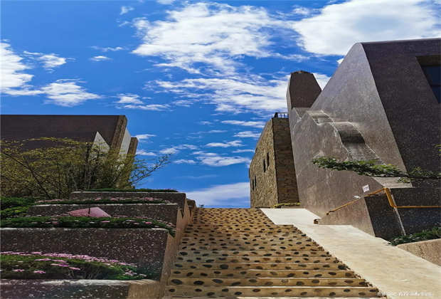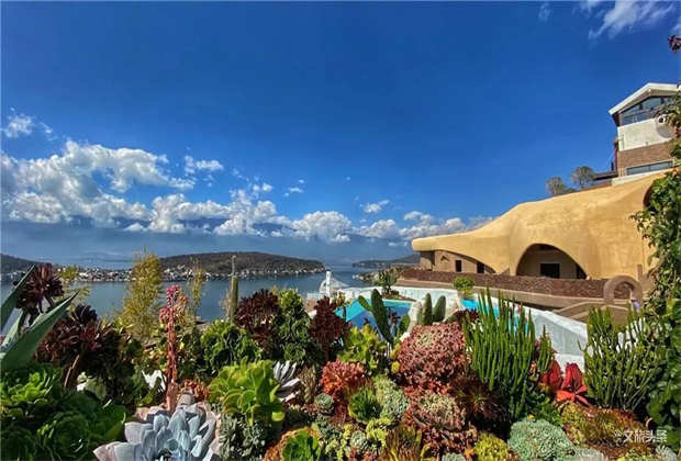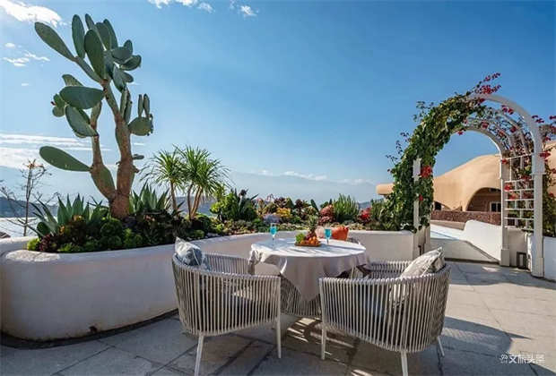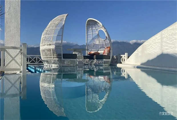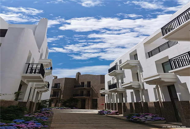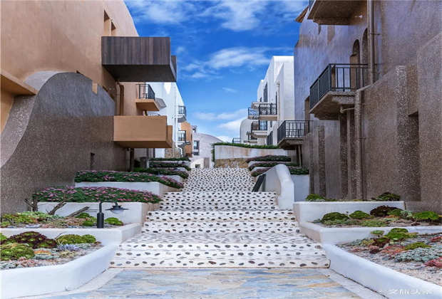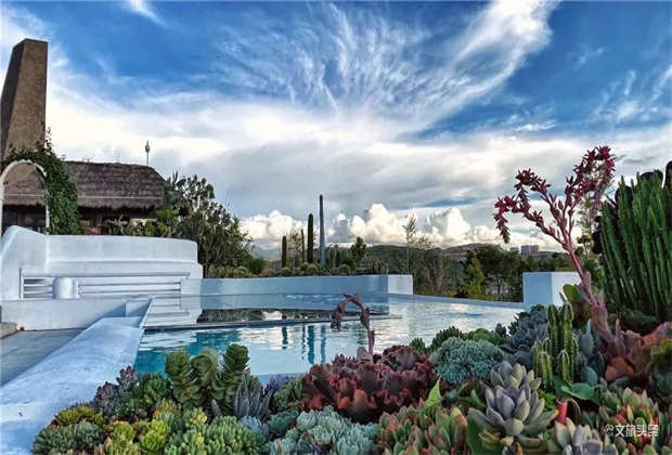 ? ? ??白色浪漫、純凈和夢幻,大地色自然、深邃,雕琢出建筑的厚重感與文化意蘊。裸露的火山石、質(zhì)樸的茅草頂,搭配著自由延伸的臺階和景墻,在廣闊的藍(lán)天背景下,與蒼山洱海融為一體,仿佛一座童話王國。