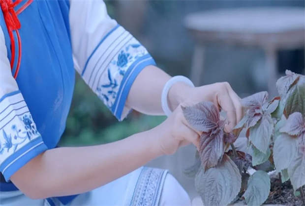 在紫蘇葉層層包裹下