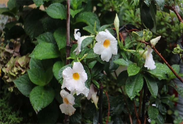 房東家院子里的飄香藤,親善堂也有,是紅色的