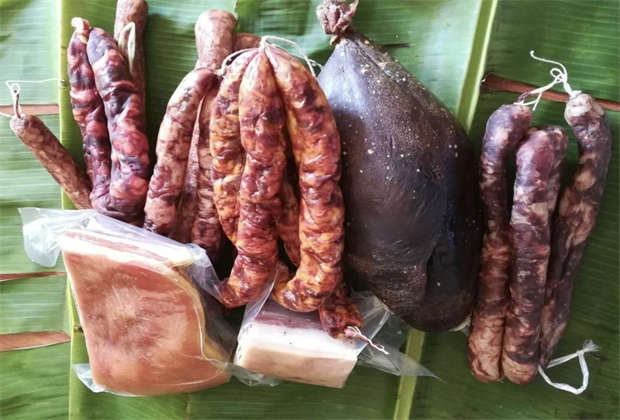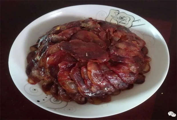 ? ? 鶴慶人烹飪臘腸方式可謂淋漓盡致,蒸、燉、煎、炒、燜飯、火鍋,無論何種方式,都非常醇香,多以蒸為主。春天的鶴慶人家,燒火做飯時,切一碗臘腸放置于木甑上,飯熟肉香。就餐時將碗倒扣于盤中,形狀美觀、臘紅油亮、誘人食欲