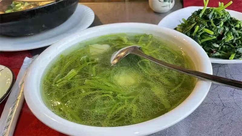 海菜芋頭湯是大理白族人民的一道傳統美食,這個季節,燒一鍋“海菜芋頭湯”,做一桌“海菜宴”,是白族人家慶祝豐收的最佳方式。海菜花莖葉口感鮮嫩,營養價值高。打撈出來的海菜,撕掉花苞外皮,摘掉頂端的小花,用清水洗凈后,將花苞和莖葉切成小段,起鍋香煎臘肉,與豆米和芋頭一起燒湯,一道清爽可口的大理名菜“海菜芋頭湯”就出鍋了,海菜花與滑糯的芋頭完美融合,讓人“愛不釋口”。