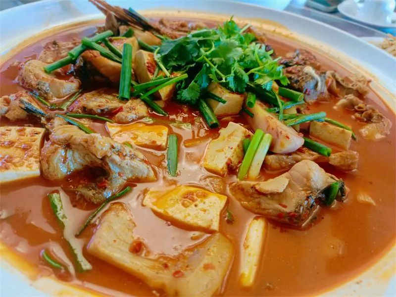 “家財萬貫不如魚湯泡飯。”在大理,幾乎家家會做酸辣魚,其味美鮮香、酸辣可口、百嘗不厭,一直以來都是白族家宴上的主角以及待客的“招牌”。大理酸辣魚以洱海鯽魚為主材,配以紅椒、青椒、木瓜、楊梅或烏梅為原料,用土灶燒柴火煮成,有時還會放入土豆和豆腐作為輔料,酸、辣、鮮、香,令人食欲大開。嘗上一口,鮮甜甘美,鮮香的魚湯用來泡飯,更是美得從胃到心里。