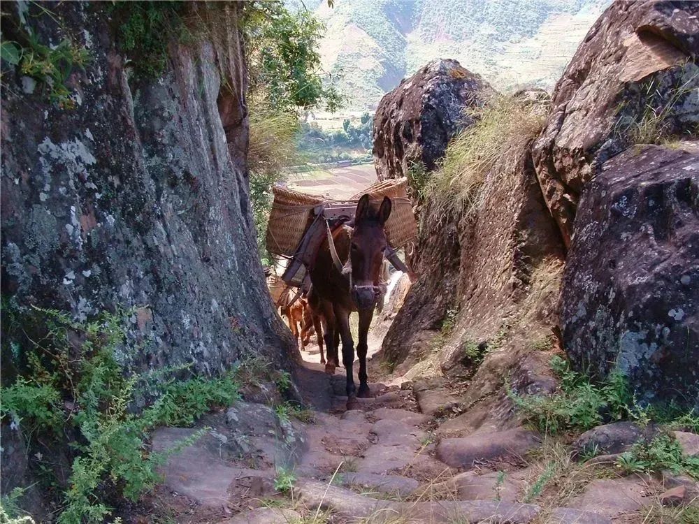 北方的四條石板路蜿蜒向遠方的群山,這是古代的鹽馬古道。那些曾經絡繹不絕的馬幫,穿越山川,留下了這片土地上的歷史痕跡。石板路上馬蹄的痕跡清晰可見,仿佛是千年前馬蹄的回響。馬幫帶來的物資與這片土地的鹽餅子交換,鹽井、鹽道與馬幫交織在一起,構成了一條經濟的血脈。