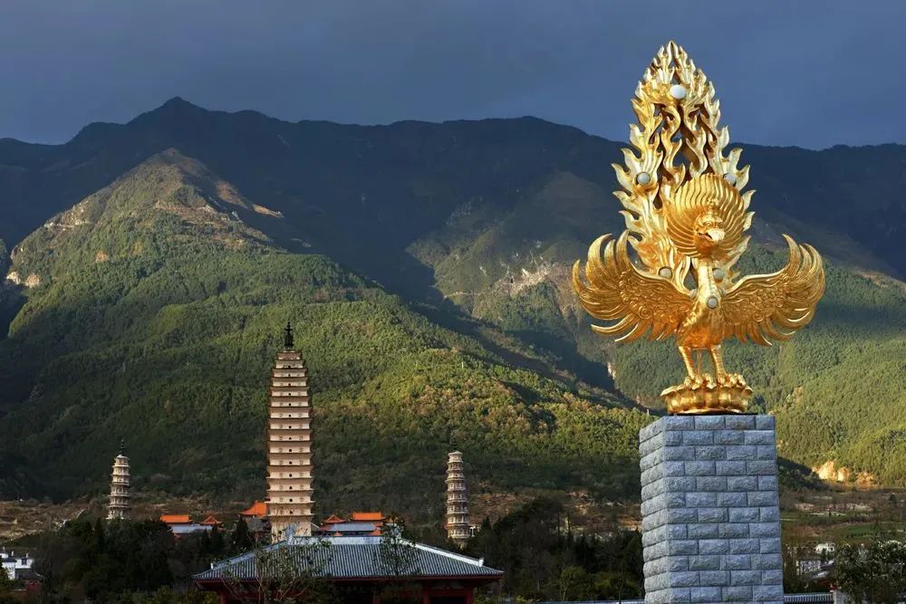 在三塔附近,一只罕見的金翅鳥振翅欲飛,它是中國奇特的佛教崇拜物,也是大理人民心中的神圣象征。這里的美麗和祥和,讓人們不禁感慨大自然的神奇和人類的智慧。金翅鳥的飛翔,似乎在訴說著一個關于信仰和希望的故事,引領著人們去感悟生活的真諦和時間的寶貴。
