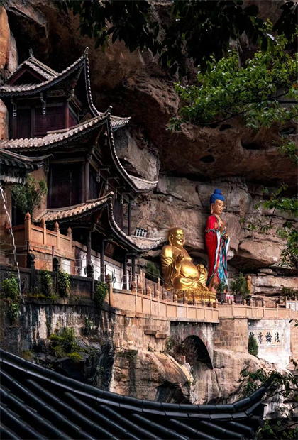 寶相寺是一座建在懸崖上的寺廟,位于石鐘寺景區外面。