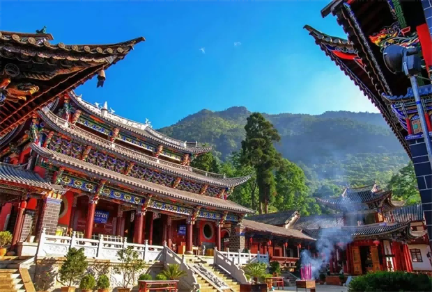 4)雞足山是佛教圣地,無論信佛與否,都要入鄉隨俗,遵守寺廟規定,保持清凈,禁止大聲喧嘩,進寺院禮佛應穿戴整潔大方,不能穿露胸、露背、露腿的衣服和拖鞋。