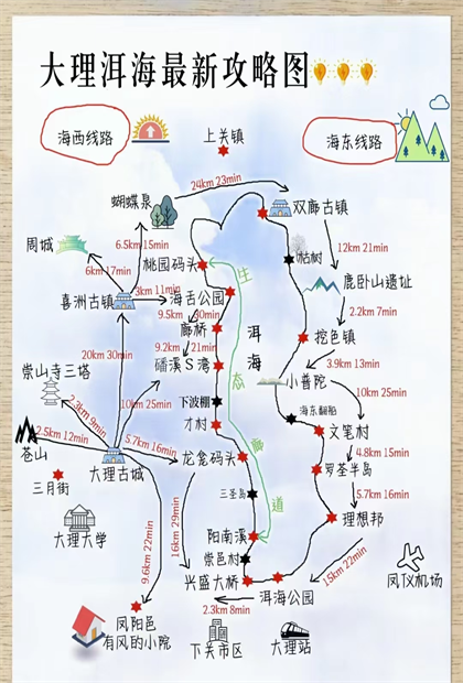 洱海東線線路推薦:雙廊古鎮--鹿臥山--挖色鎮--小普陀--文筆村--羅荃半島--理想邦--云想山 (路極主題公園)