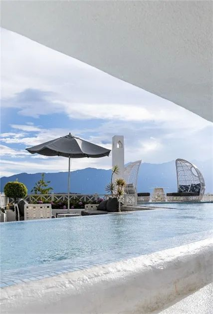 “理想邦”位于大理海東鎮,這里依山而建,面朝洱海,景色秀麗。其建筑風格融合了圣托里尼的浪漫與大理的風情,以白色、藍色和裸露的火山石等元素為主,與周圍自然環境渾然一體,讓人仿佛置身于童話世界。從高處俯瞰,洱海的美景盡收眼底,水天一色,令人心曠神怡。無論是拍照打卡還是放松身心,理想邦都是一個絕佳的選擇。