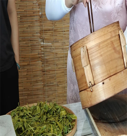 高溫蒸軟:高溫蒸汽使茶葉表面的果膠重新釋放方便下一步壓型,以及后續的儲存。