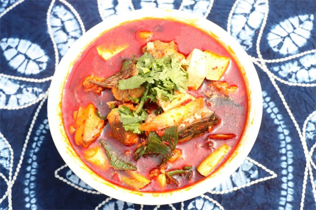 3、酸辣魚:大理的傳統美味,宴席必備菜之一。當新鮮鯽魚和酸木瓜、梅子醋相遇,酸辣湯淋上大米飯,真正體會到