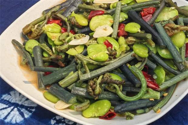 10、青豆米炒蕨菜:脆嫩蕨菜配上青豆米上演山野精靈與田園時鮮的春日圓舞曲,一口就能在街場里吃進整個春天的生