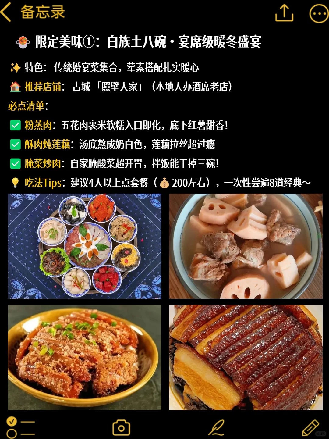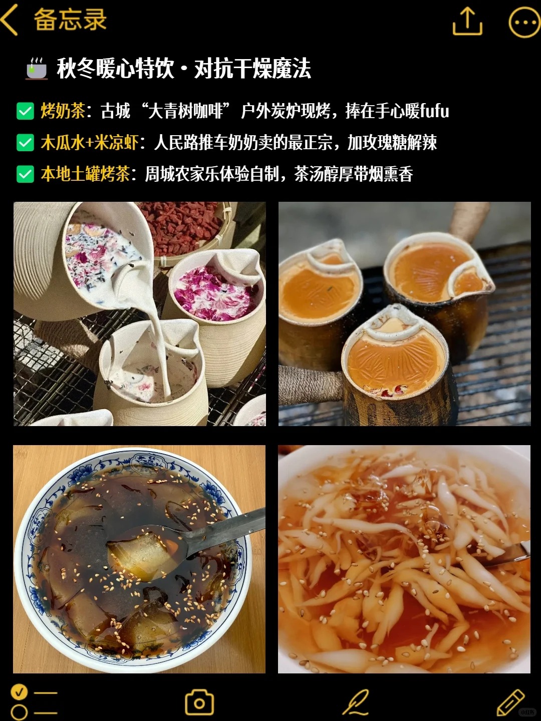 桂花釀:本地農(nóng)戶現(xiàn)釀的桂花酒,度數(shù)低微甜,配著烤乳扇吃,秋日氛圍感拉滿。記得買玻璃瓶裝的,方便帶走
