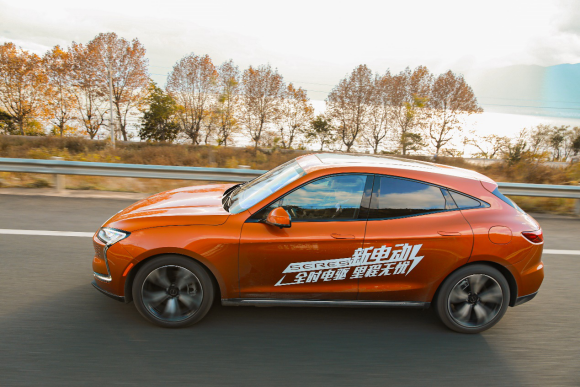 這次我們試駕一共跑了111公里,全程沒有充電,但當純電模式運行到30%左右的時候,我們開啟了增程模式,跑完全程時我們的電能已經從30%增加到了57%。而且不管是在純電模式還是增程模式下動力都非常強勁,提速非常快,加速超車時也很順暢。可見在增程模式下,SF5整車性能沒有絲毫影響,發動機可以在提供電機驅動的同時為電池充電,所以不必擔心長途線路找不到充電樁的問題,加油亦可發電驅動。而且因為是全時電驅,所以SF5的動力、性能能夠始終保持高效運行。