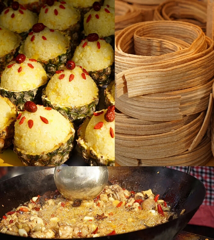 美味佳肴成為了三月街的一大特色:白族的三道茶、砂鍋魚頭、乳扇、酸木瓜炒雞、牛肉燒板栗、黃悶雞等臨時搭建的食館擠滿了來自各地的群眾。不得不提的還有酸、甜、咸味俱全的大理梅子:放著辣椒面腌制的酸而辣的腌梅、與泡透了的蠶豆一起煮燉的燉梅,經過雕刻后加工而成的雕梅更像一個藝術品,含如嘴中,清香、脆甜、沁入肺腑。
