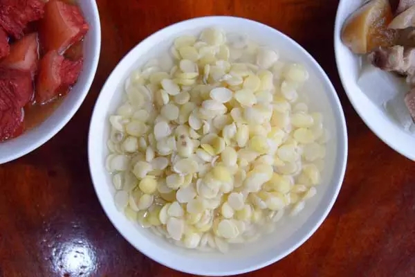 “相思百年”別名“金絲壇豆”。白族卻以白色為最純潔的征,所以將潔白無瑕的金絲壇豆作為相思豆。借“壇”諧音“圓”,代表“相思百年,圓圓滿滿”。這道菜還有補腎益脾之功效。