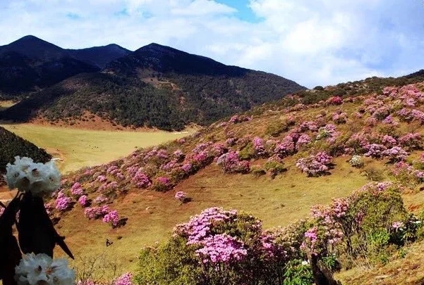 在馬耳山山腰,漫山遍野的杜鵑花從四月一直開到六月多,白色、粉紅色的杜鵑花和各種野花綿延不絕、錯落有致,成為觀賞高山杜鵑花的好去處。