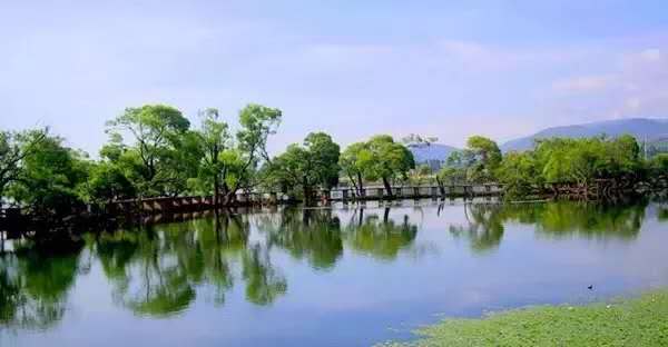 潭水清澈,波光粼粼,一派水鄉澤國風光。