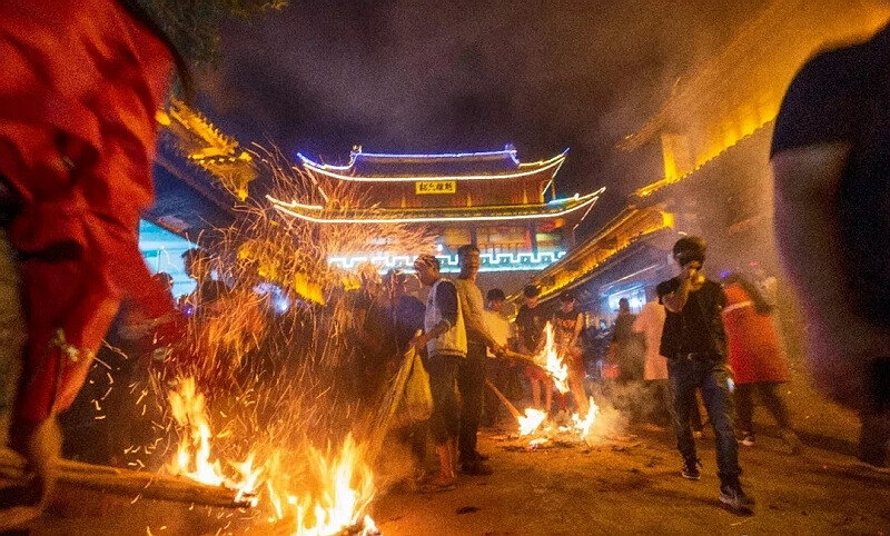 火把節(jié)是巍山流傳最廣的節(jié)日。每年的農歷六月二十五這天,巍山人一大早就走出家門,采購節(jié)日用品。天色將晚,家家戶戶點起小火把,縣城廣場中央點起大火把,大家圍著火把縱情狂歡,整個巍山成了歡樂的海洋……