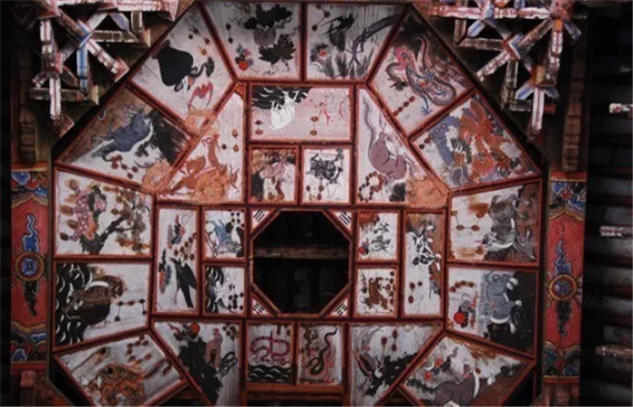 諾鄧玉皇閣始建于明嘉靖年間,是古代著名的道教宮觀。這是云南地區少見的三層閣樓式道教建筑,大院內有明代的梅樹及翠柏、紫薇、金桂等。大殿頂層上現存的藻井繪畫“二十八星宿圖”可稱為“諾鄧一絕”,對研究中國古代天文、藝術、建筑等方面有一定的參考價值。