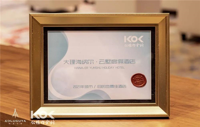 近日,2021年KOL公信力金榜頒獎典禮暨第四屆“KOL酒店傳播沙龍”在哈爾濱敖麓谷雅酒店舉辦。連續頒發四年的KOL公信力金榜旨在通過真實入住體驗和社交媒體口碑選出各個城市及不同類別的最佳酒店,頒獎典禮上,大理海納爾·云墅度假酒店喜獲“城市丨目的地最佳酒店”大獎。