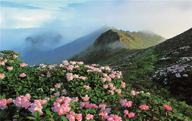 紅的似火,粉的像霞,白的如雪……洗馬潭附近,成片杜鵑花開成海,明媚嬌美,一團團、一簇簇,漫山遍野,綿延數里。