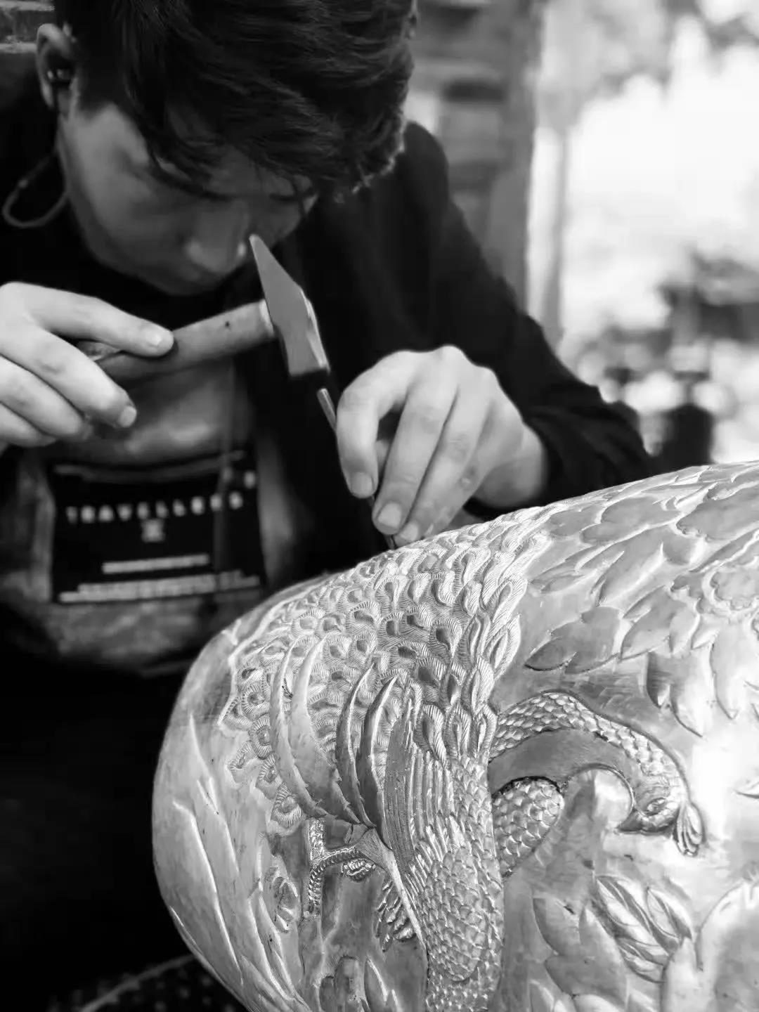 “獨坐幽篁里,彈琴復長嘯。深林人不知,明月來相照。”隨處可見正在打磨銀器的匠人,揮舞小錘,在木墩上叮叮當當地敲打著,以銀為技,雕琢時光。