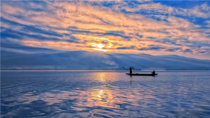 “棉被云”“蘑菇云”、玉帶云,演繹不盡大理云之魅。晚霞點(diǎn)染水天一色,變幻無窮的光影大片,任誰也不舍挪眼。