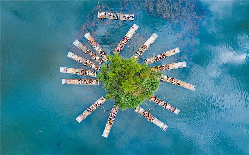 一汪清水,兩艘小船,幾多景致,鶴慶黃龍潭的初夏在云淡風輕中悄然降臨。