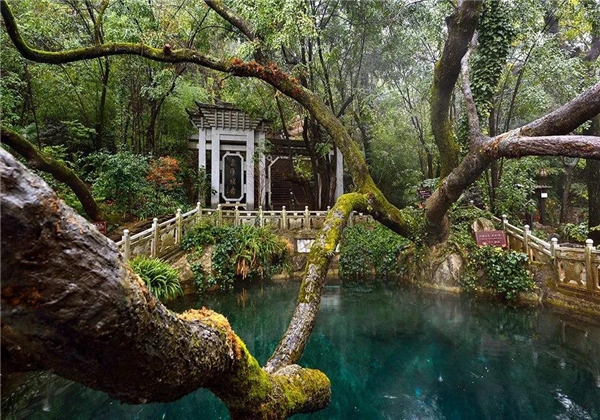 蝴蝶泉的下方是“五龍池”。五龍池的水,被視作忠貞愛情的象征;在“五龍吐水”的龍頭下洗手,可把幸福、吉祥帶回家。