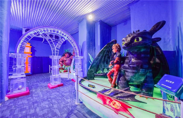 景區還配套有室內冰雪樂園,以親子、游樂為主線,串聯藝術冰雕和娛雪場景,可以滑雪、滑冰、堆雪人、打雪戰,還可以和原始人、王子公主、動物萌寵等近40種卡通形象冰雕拍照互動,深受親子家庭青睞。