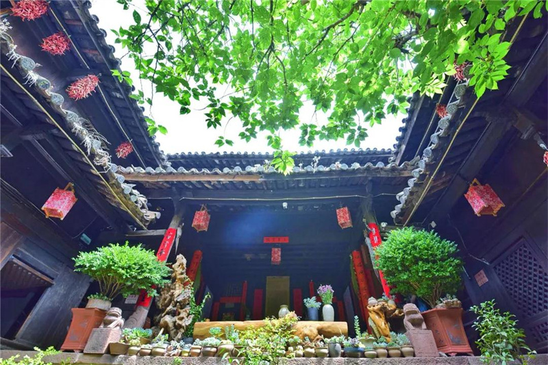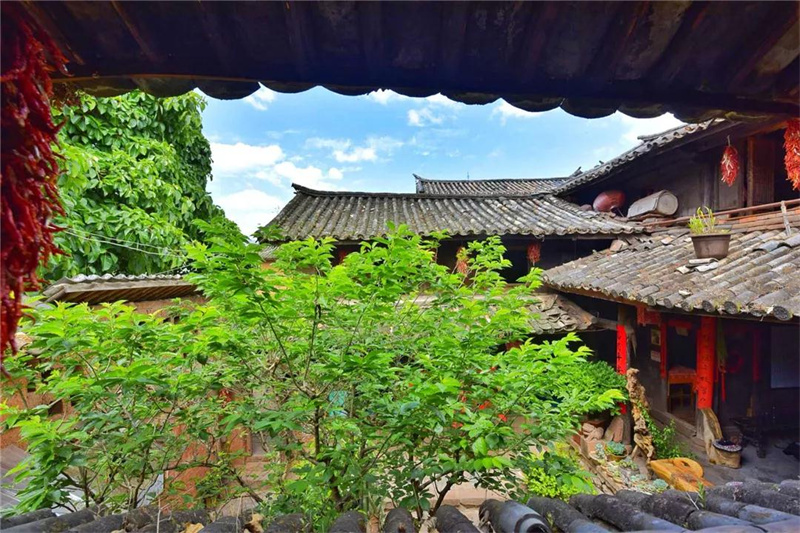 坐在大青樹小院里,圍著小木桌喝藥茶,有薄荷的清新,葛根的回味。正前面一個半圓型水缸,滿滿一缸水靜靜倒映著屋檐的瓦色。身后是一人多高的屋檐臺,上面斜倚著一把躺椅,陽光懶洋洋地堆疊在上面,那一坐,仿佛閉上眼就能恍然入夢。