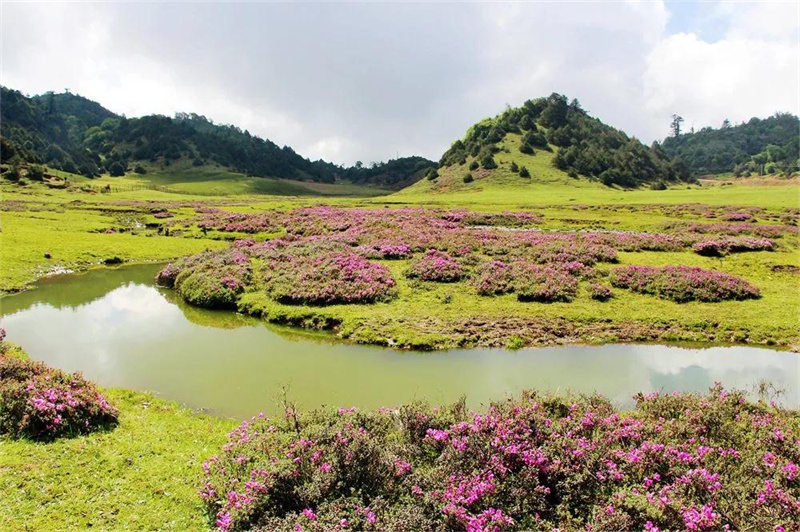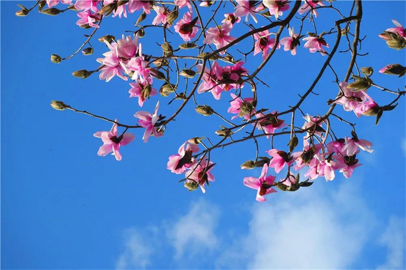 陽春三月的曹澗林場更不容錯過。春暖花開時,林場內(nèi)潔白的、粉紅的、紫紅的、大紅的……各色滇藏木蘭,爭先恐后,競相開放,還有杜鵑花、報春花、瑞香、山胡椒、野八角等各種野花,讓人不禁夢入童話般的世界。