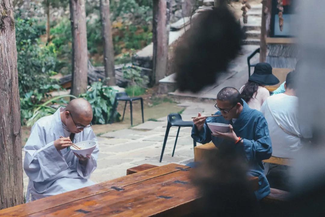 遠道而來的人們可以吃上一碗美味的素齋,還可以免費喝一杯清茶。
