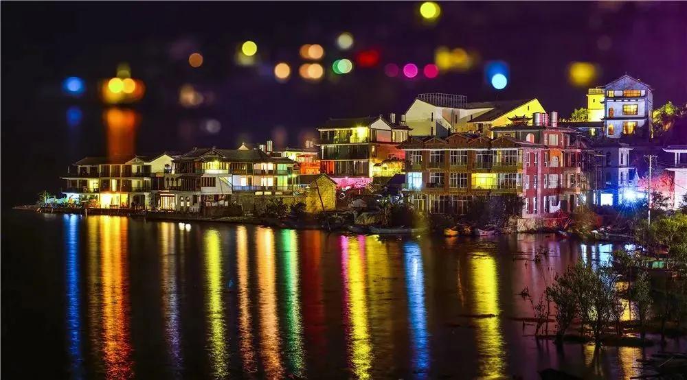 流溢的燈光在湖面星星點(diǎn)點(diǎn)